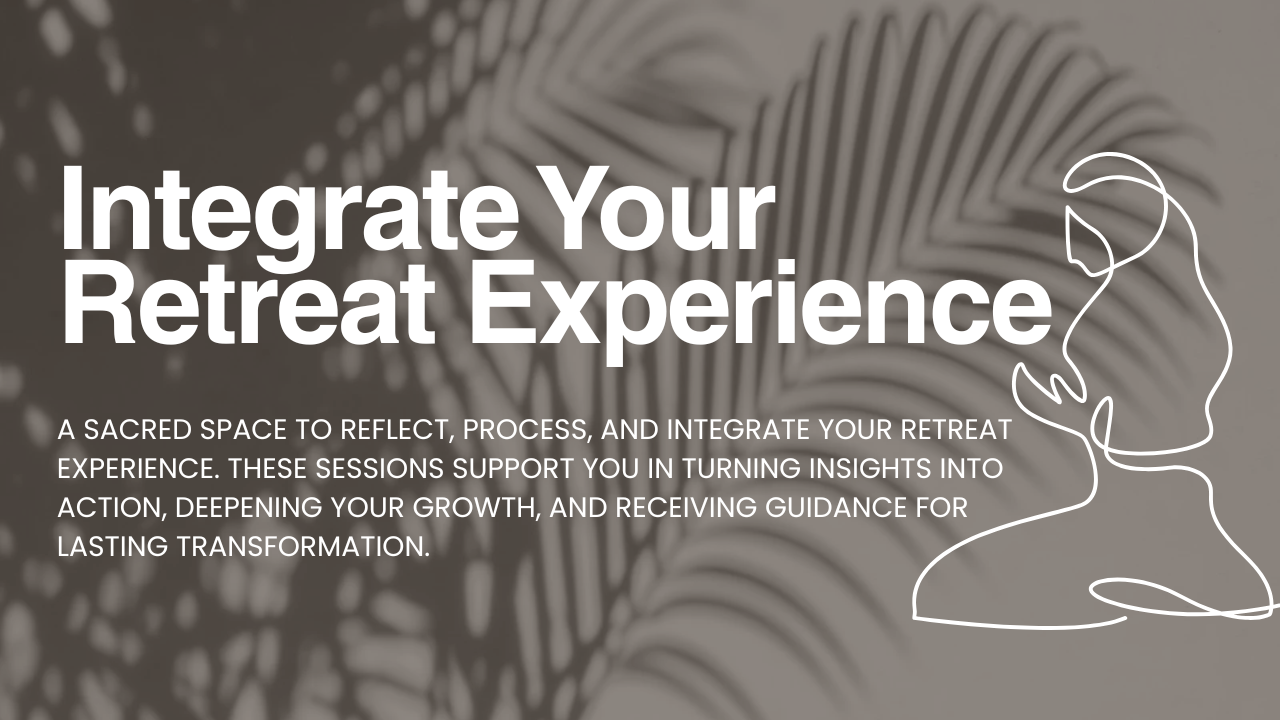 Following the retreat, I’m offering an integration sessions to help you process, embody, and sustain the insights you receive. These sessions are optional but highly recommended for grounding your experience into daily life.